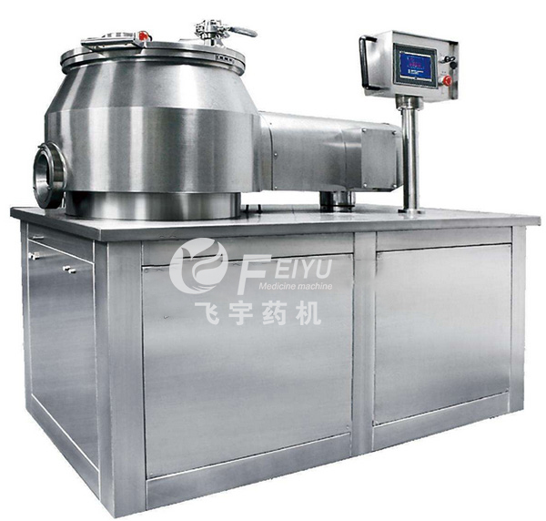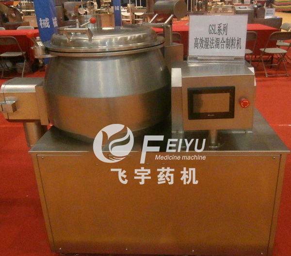粉體物料與粘合劑在圓筒形容器中由底部混合漿充分混合成濕潤軟材,然后由側(cè)置的高速粉碎槳切割成均勻的濕顆粒。